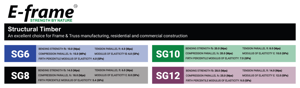 E-frame™ meets the highest standards, fully compliant with NZS/AS:1748 for product requirements and NZS/AS:4063 for in-grade strength and stiffness. This guarantees consistent, top-tier products.